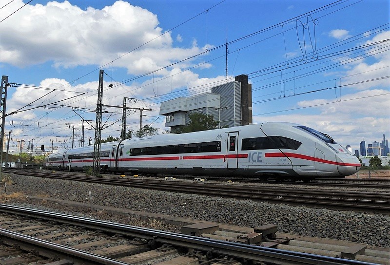 01.09.2022: DB 812 034-7 (Siemens Mobility, BR 412, ICE 4, Bj. 2019) TZ 9034 nach Abfahrt vom Hauptbahnhof Frankfurt (Main) kurz vor der Niederräder Eisenbahnbrücke: