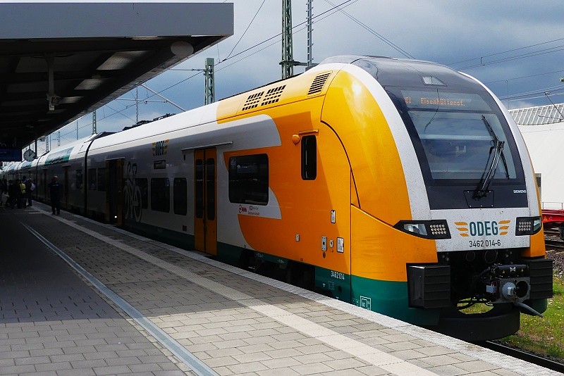 ODEG 3462 014-6 Publiziert 1. August 2025 | Von Waterclerk 01.08.2025: ODEG 3462 014-6 (Siemens Desiro HC, BR 3462, sechsteilig, Bj. 2022) der Ostdeutschen Eisenbahn GmbH als RE 1 bei der Abfahrt vom Hauptbahnhof Magdeburg nach Eisenhüttenstadt um 12:12 Uhr: Schreibe einen Kommentar Antwort abbrechenDeine E-Mail-Adresse wird nicht veröffentlicht. Erforderliche Felder sind mit * markiertKommentar * Name * E-Mail * Website Meinen Namen, meine E-Mail-Adresse und meine Website in diesem Browser für die nächste Kommentierung speichern.