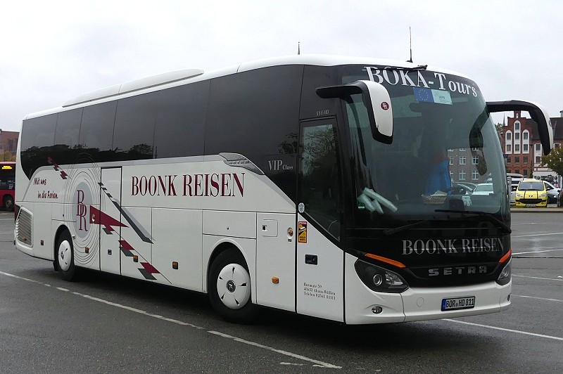Boonk Reisen BOR-HD 811 Publiziert 7. Oktober 2025 | Von Waterclerk 03.09.2025: BOR-HD 811 (Boonk Reisen GmbH Omnibusbetrieb Taxen, Ahaus) in Warteposition auf dem Parkplatz an der Willy-Brandt-Allee in Lübeck: