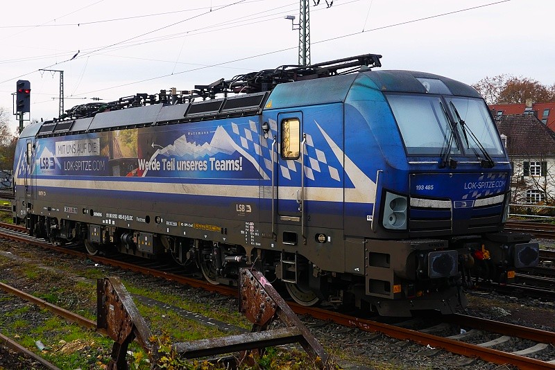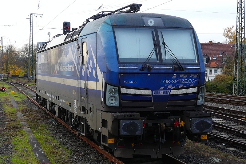13.11.2025: RTB 193 485-0 (Siemens Vectron MS, Bj. 2020) der Rath Fleet B.V. Rotterdam für die RTB Ruhrtal-Cargo GmbH Düren in Abstellung am Bahnhof Frankfurt-Höchst: