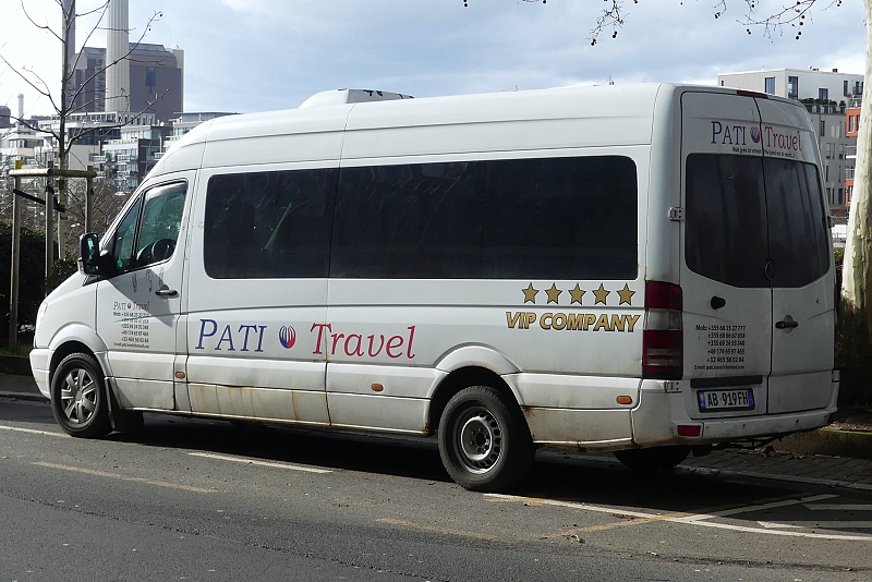 23.02.2026: AB-919 FH (Pati Travel Transport Shqipëri Gjermani Belgjikë, Tiranë, Albanien) in Abstellung am Theodor-Stern-Kai in Frankfurt am Main: