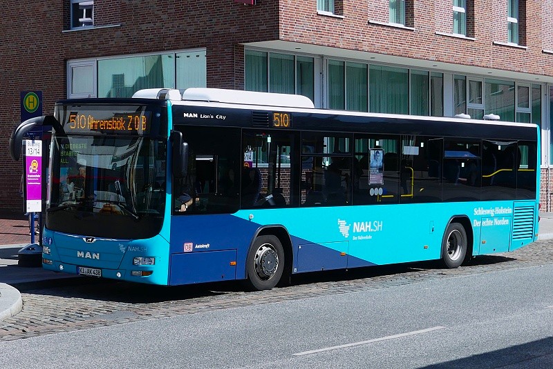 19.07.2025: KI-AK 438 (Autokraft GmbH, Kiel) auf NAH.SH-Linie 510 () nach Ahrensbök vor der Abfahrt vom ZOB Lübeck: