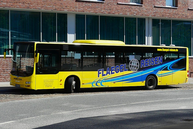 19.07.2025: GDB-SE 588 (Flaegel Reisen, Taxi-und Omnibusbetrieb, Gadebusch) für den HVV in Warteposition am ZOB Lübeck: