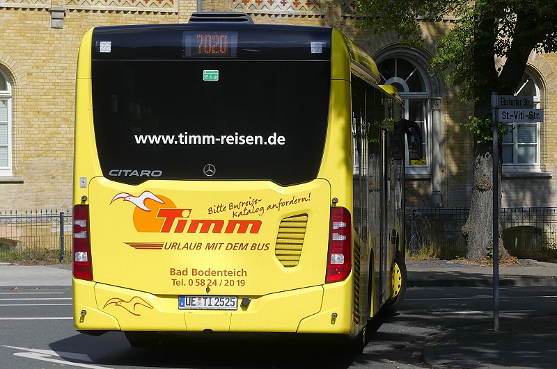 19.07.2025: UE-TI 2525 (Timm Omnibusbetrieb GmbH, Bad Bodenteich) auf RBB-Linie 7020 (Regionalbus Braunschweig GmbH) nach Bad Bodenteich in Höhe St.-Viti-Strasse in Uelzen: