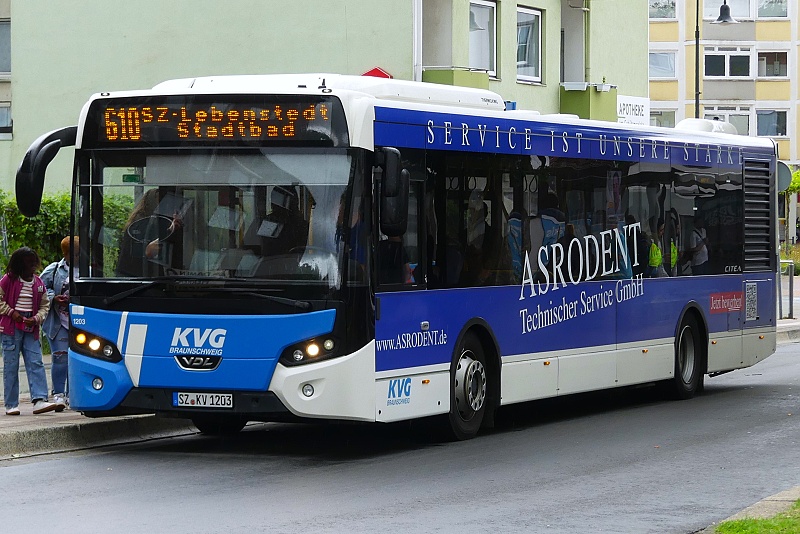 25.07.2025: SZ-KV 1203 ( Kraftverkehrsgesellschaft mbH Braunschweig (KVG), Salzgitter) auf KVG-Linie 610 in Richtung Salzgitter-Lebenstedt am Bahnhof Salzgitter-Bad: