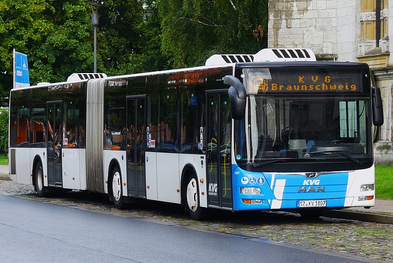 25.07.2025: SZ-KV 1807 (Kraftverkehrsgesellschaft mbH Braunschweig (KVG), Salzgitter) in Warteposition am Kornmarkt in Wolfenbüttel: