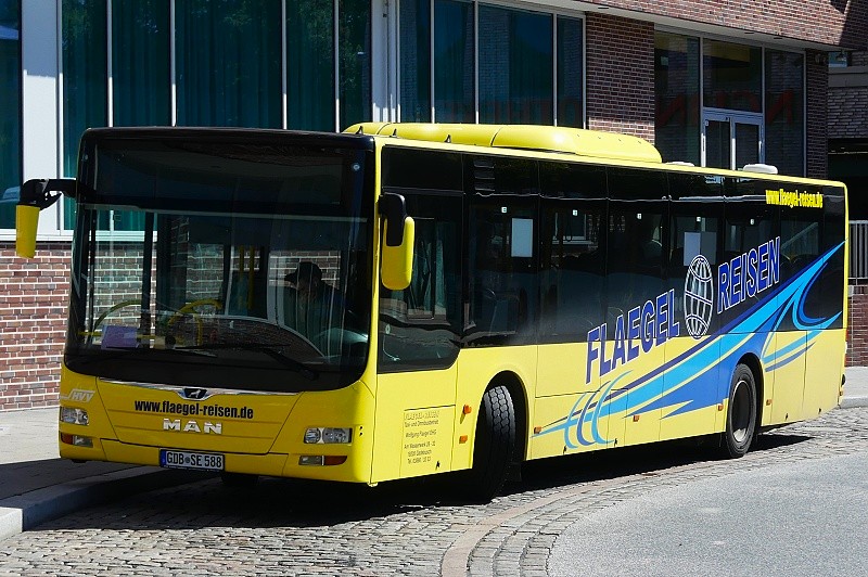 19.07.2025: GDB-SE 588 (Flaegel Reisen, Taxi-und Omnibusbetrieb, Gadebusch) für den HVV in Warteposition am ZOB Lübeck:
