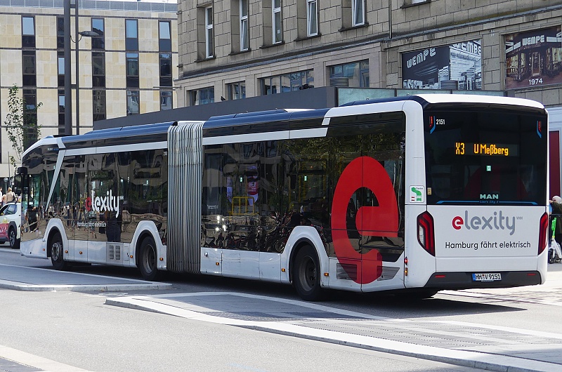 11.08.2025: VHH 2151 (HH-V 9151) der VHH mobility-Verkehrsbetriebe Hamburg-Holstein GmbH auf XpressBus-Linie X3 (HVV Hamburger Verkehrsverbund Gesellschaft mbH) in Richtung Messberg (U) an der Haltestelle Jungfernstieg: