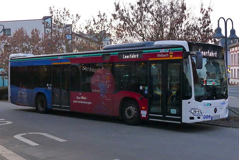20.11.2025: LM-BU 501 (Limbus GmbH, Dornburg) in Warteposition an der Haltestelle Limburg ZOB West: