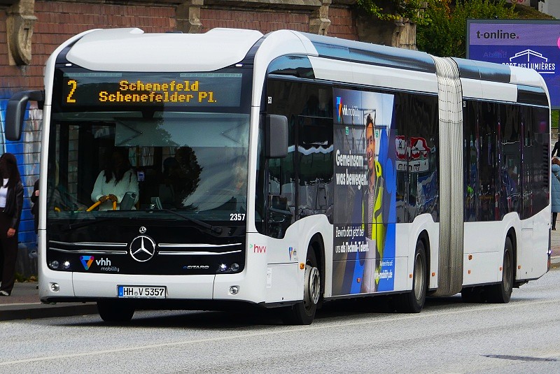 03.10.2025:VHH 2357 (HH-V 5357) der VHH mobility-Verkehrsbetriebe Hamburg-Holstein GmbH auf Linie 2 (HVV Hamburger Verkehrsverbund Gesellschaft mbH) in Richtung Schenefelder Platz in Höhe Landungsbrücken: