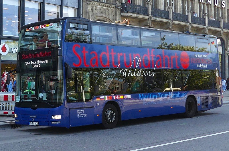 11.08.2025: HH-MM 4023 der SRH Stadtrundfahrt in Hamburg GmbH auf Sightseeing-Tour Linie D in Höhe Jungfernstieg: