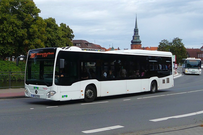 27.08.2025: STD-E 2442 ( KVG Stade GmbH & Co. KG, Stade) auf StadtBus-Linie 2002 (HVV Hamburger Verkehrsverbund Gesellschaft mbH) zum Bockhorster Weg am Bahnhof Stade: